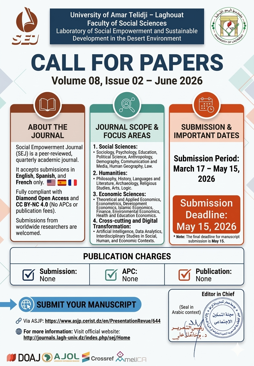 The Social Empowerment Journal (SEJ) is pleased to announce the Call for Papers for: Volume 08, Issue 02 – June 2026