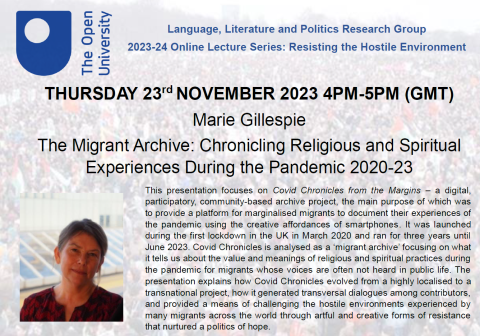 Marie Gillespie from the Open University will be talking about the challenges for  migrants documented during the pandemic
