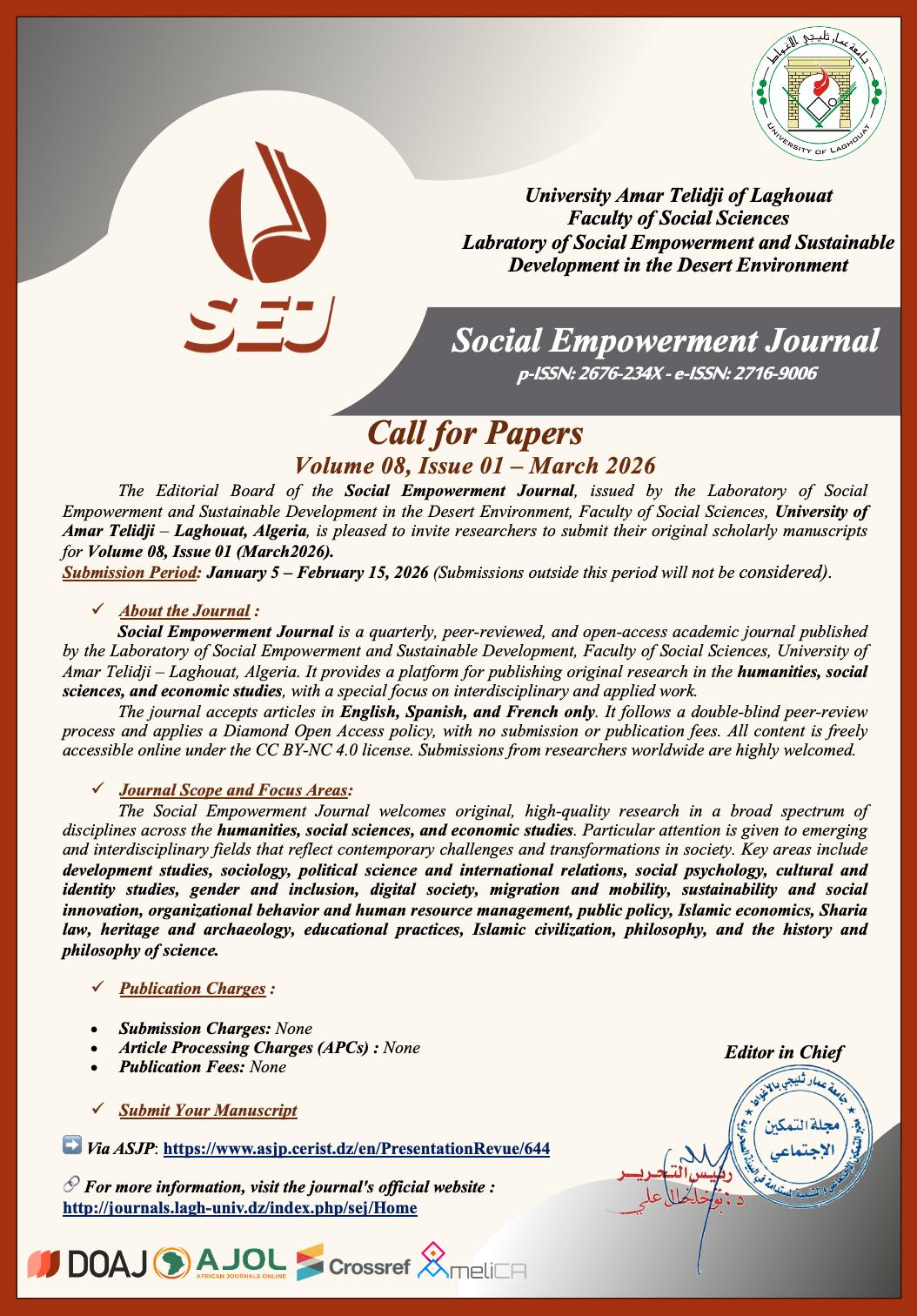 The Social Empowerment Journal (SEJ) is pleased to announce the Call for Papers for: