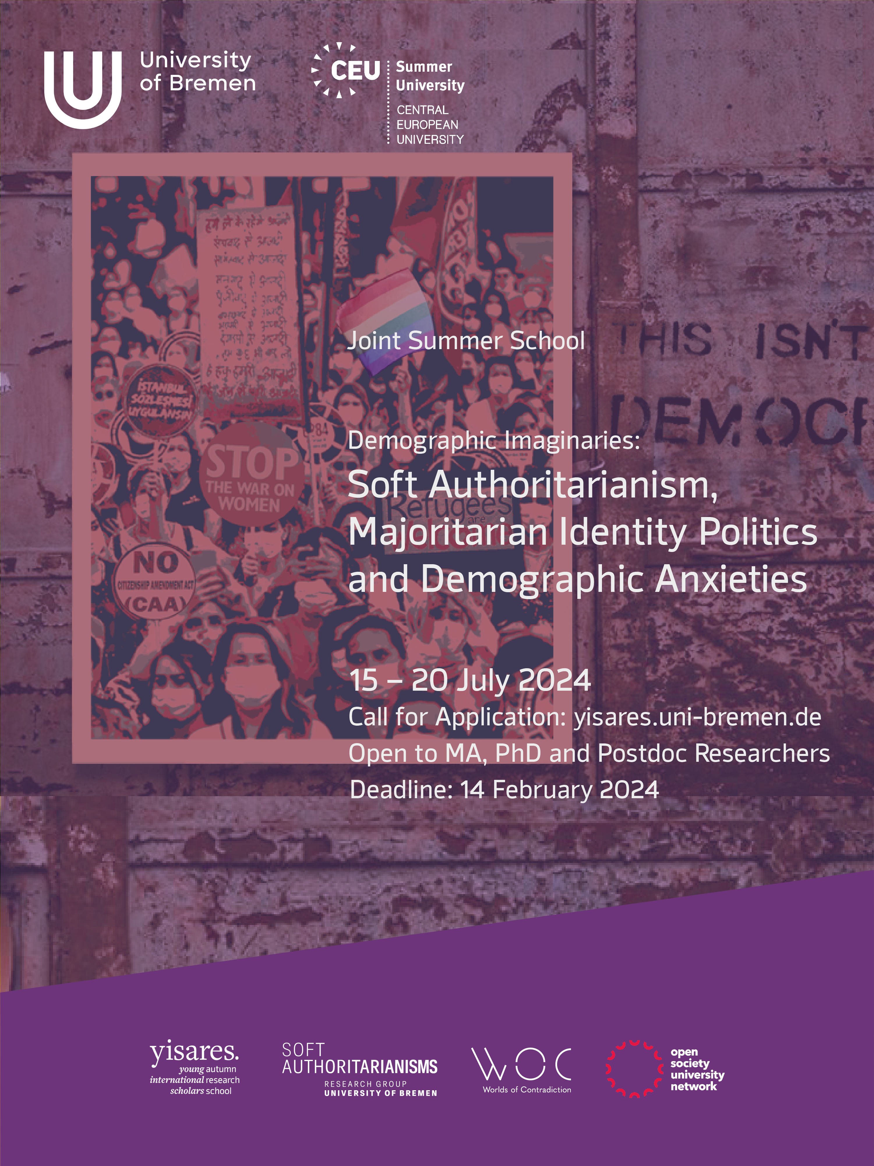 This Summer School aims at addressing the central role of demographic imaginaries that are currently facilitating soft authoritarian politics in different parts of the world. Conservative governments and far-right movements across different country contexts share a set of strikingly similar strategies including a backlash against progressive reproductive and women’s rights, same-sex marriage, and LGBT+ communities, the use of coercive policies and rhetoric against religious, ethnic, and other minorities, or anti-immigration policies. Demographic anxieties are nurtured by conspiracy myths such as the narrative of the “great replacement,” as well as by other forms of majoritarian identity politics which imagine the majority (be it: white, Christian and heterosexual, Hindu National, Turkish Sunni Muslim, or European etc.) as threatened by political, ethnic, religious, sexual and other minorities and their struggles for equal rights. Looking into the specific political, juridical, cultural, technological, and discursive practices in the different country contexts, the Summer School will approach this topic from an interdisciplinary and globally comparative perspective. It will examine how such practices underpinning demographic imaginaries are deployed today and the technological infrastructures and data-political presumptions they involve. The Summer School therefore has the overall goal of grasping the extent of these politics, their contradictions and effects, and the dangers that they entail for democratic and peaceful living together.